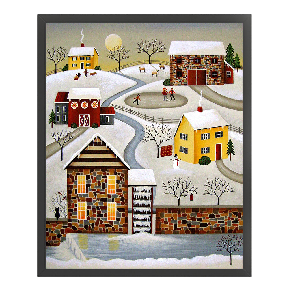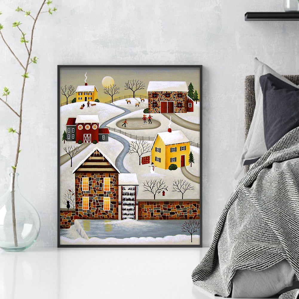 • Load image into Gallery viewer, Huancan - Winter Town - 40*50CM 11CT 3 Stamped Cross Stitch