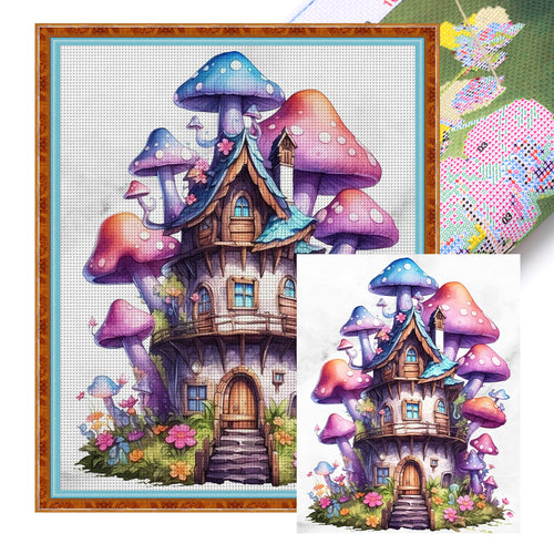Yishu - Mushroom House - 50*60CM 11CT 3 Stamped Cross Stitch