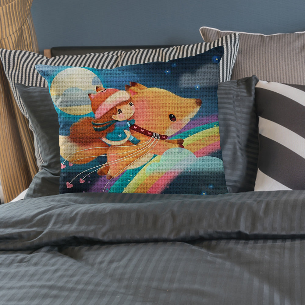 17.72x17.72In Cushion Cross Stitch Creations with Zip Cross Stitch Pillow Cover Fox and Girl Cross Stitch Stamped Pillow Cover Kit Handicraft Embroidery Pillowcase for Kids Adults Sewing Craft Gift