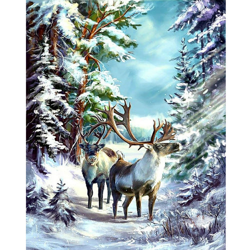Deer In The Snow 30*30CM(Picture) Full Round Drill Diamond Painting