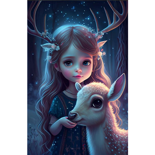 Girl And Deer 40*50CM(Canvas) Full Round Drill Diamond Painting
