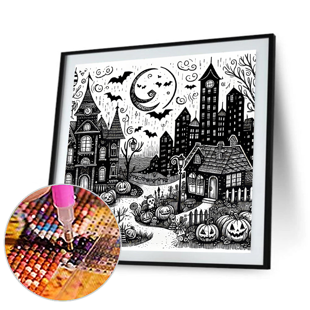 Black And White Halloween 40*40CM(Canvas) Full Round Drill Diamond Painting