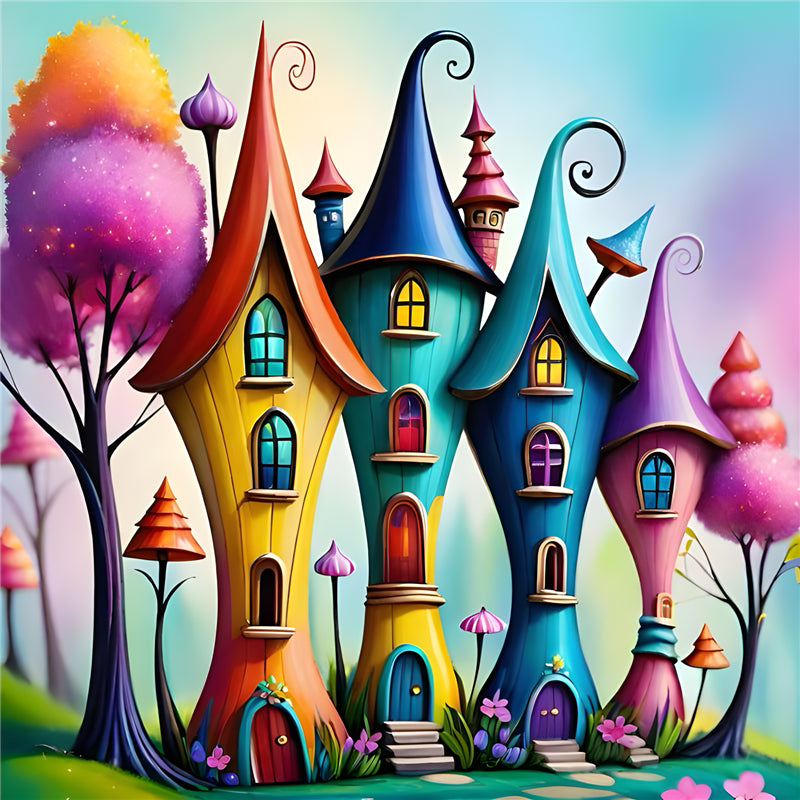 Colorful House 30*30CM(Canvas) Full Round Drill Diamond Painting