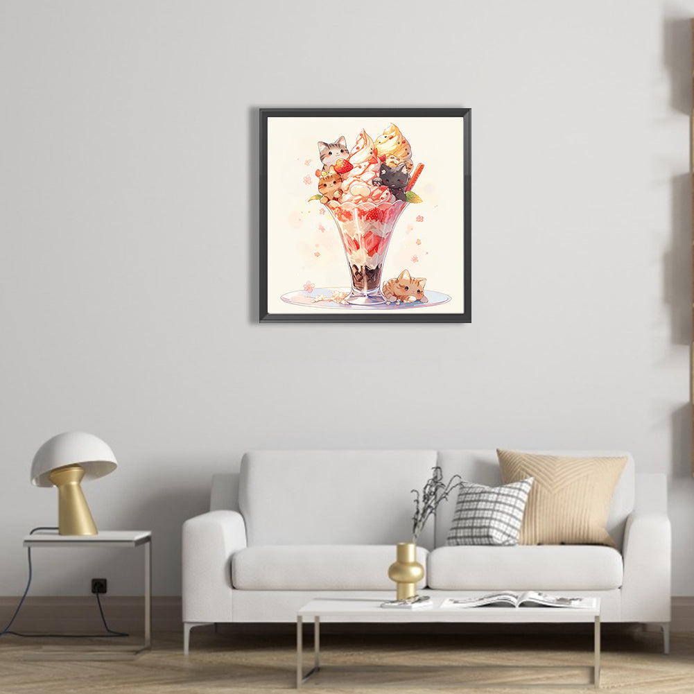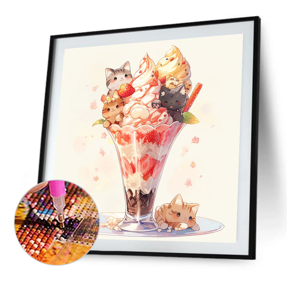 Cat Ice Cream 40*40CM(Picture) Full Square Drill Diamond Painting