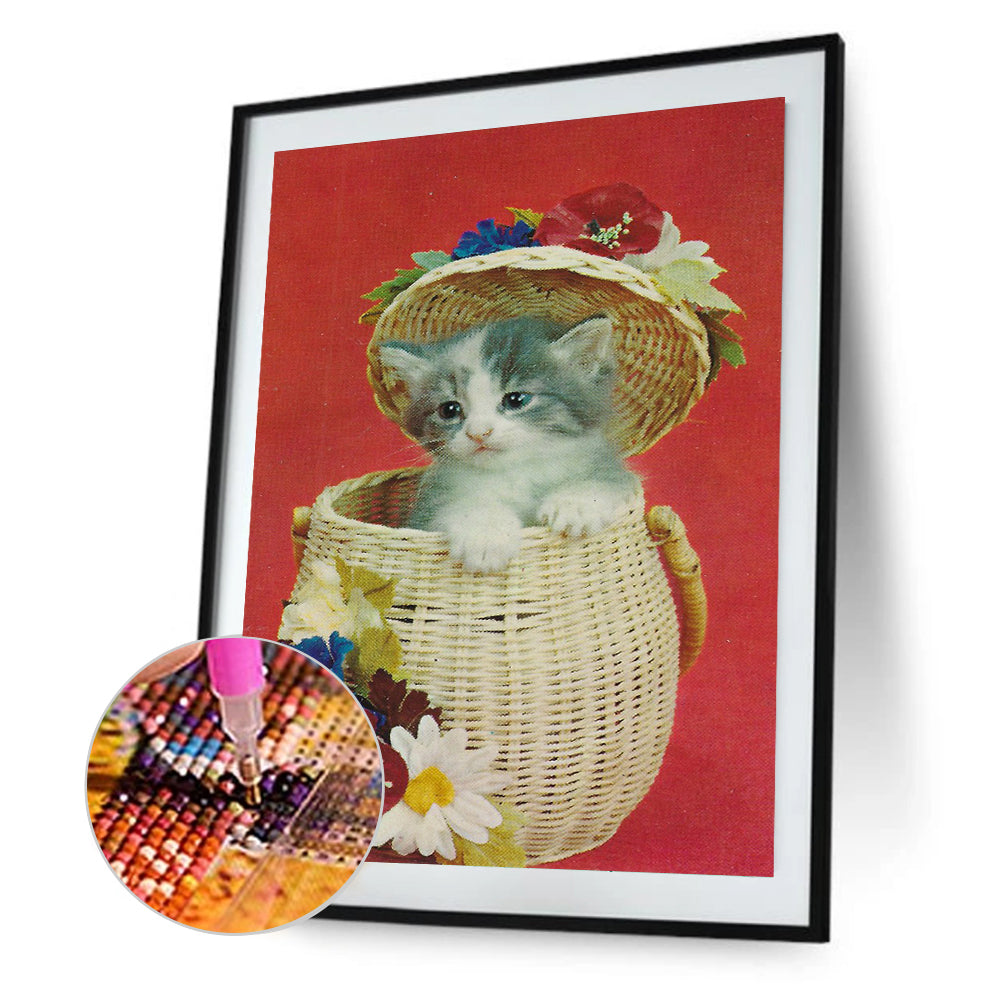 Cat In A Backpack 30*40CM(Canvas) Full Round Drill Diamond Painting