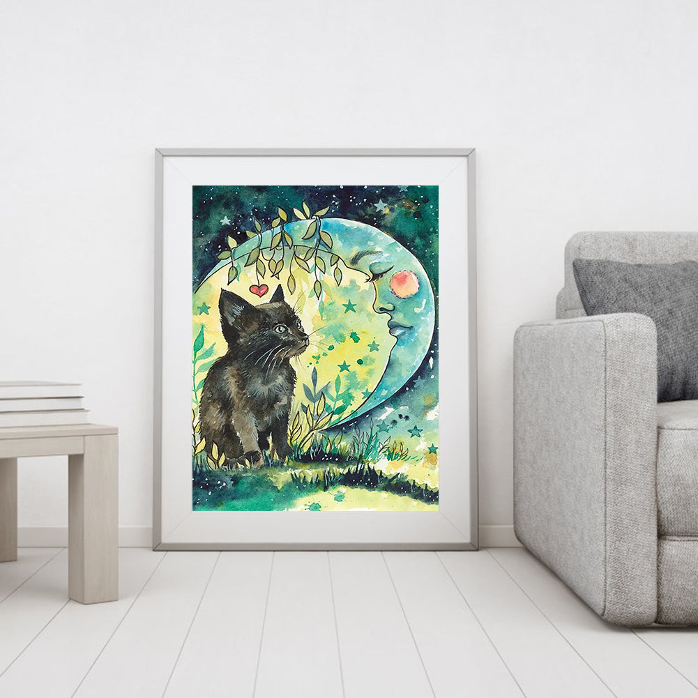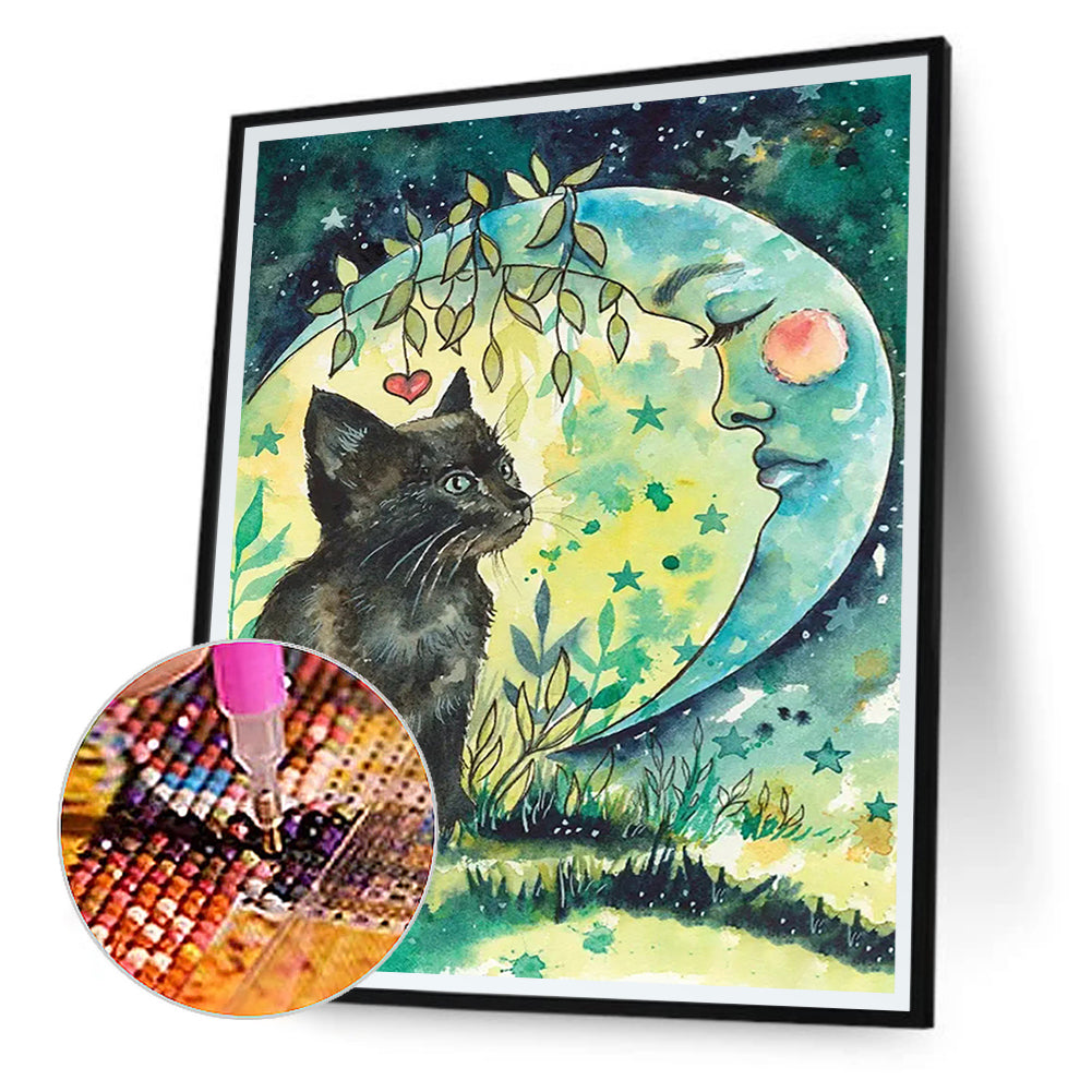 Cat Looking At The Moon 30*40CM(Canvas) Full Round Drill Diamond Painting