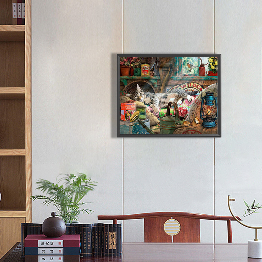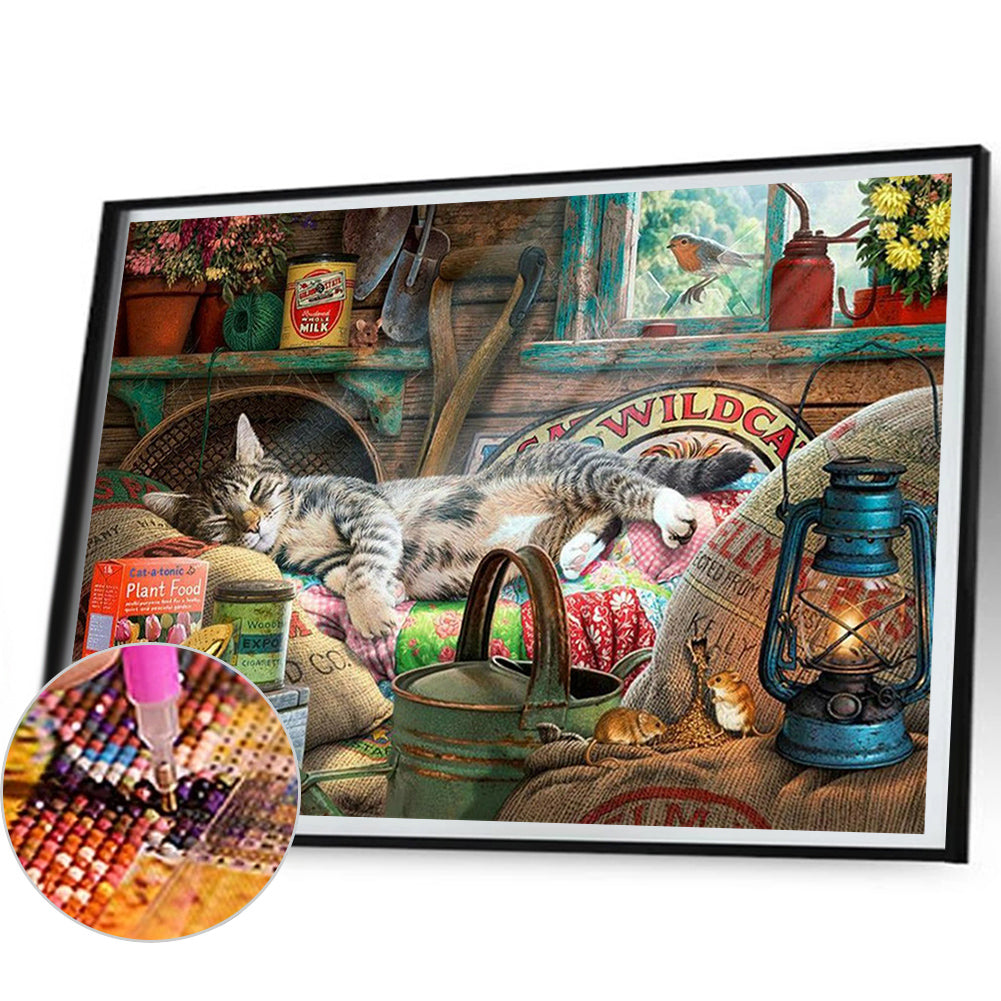 Cat Sleeping Lazy 50*40CM(Canvas) Full Round Drill Diamond Painting