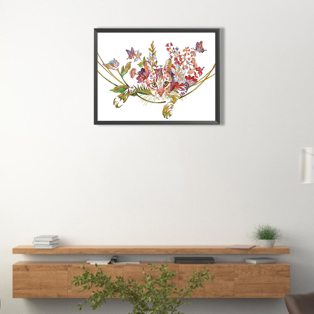 Cat With Flowers 40*30CM(Canvas) Full Round Drill Diamond Painting