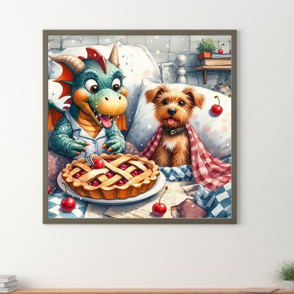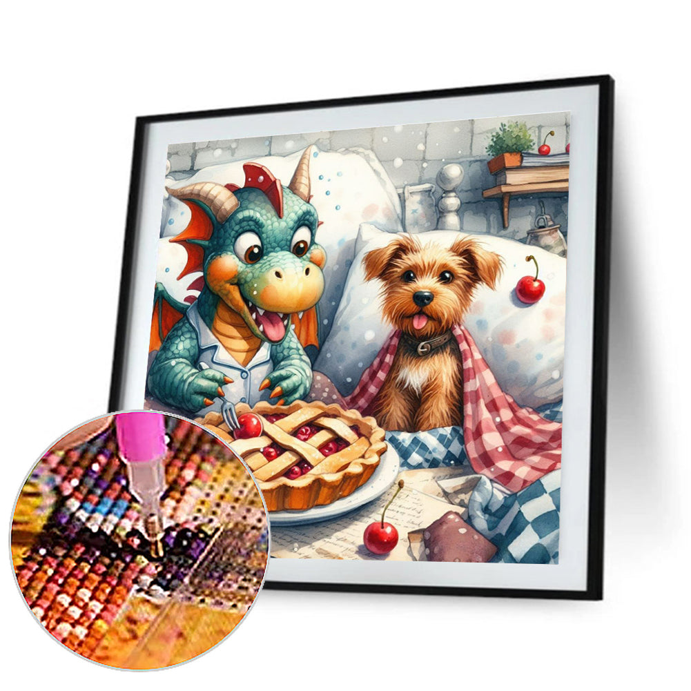 Dragon And Yorkshire Terrier 40*40CM(Canvas) Full Round Drill Diamond Painting