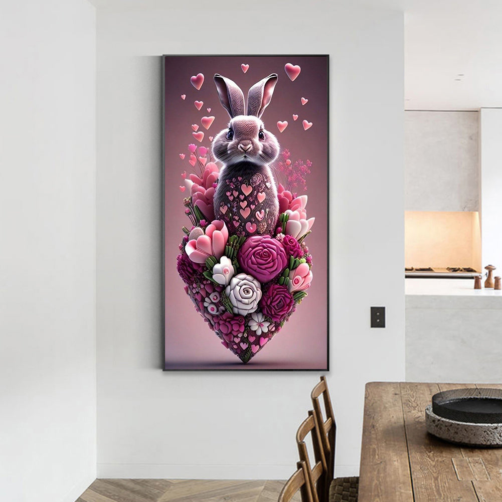 Heart-Shaped Rabbit With Flowers 40*70CM(Canvas) Full Round Drill Diamond Painting