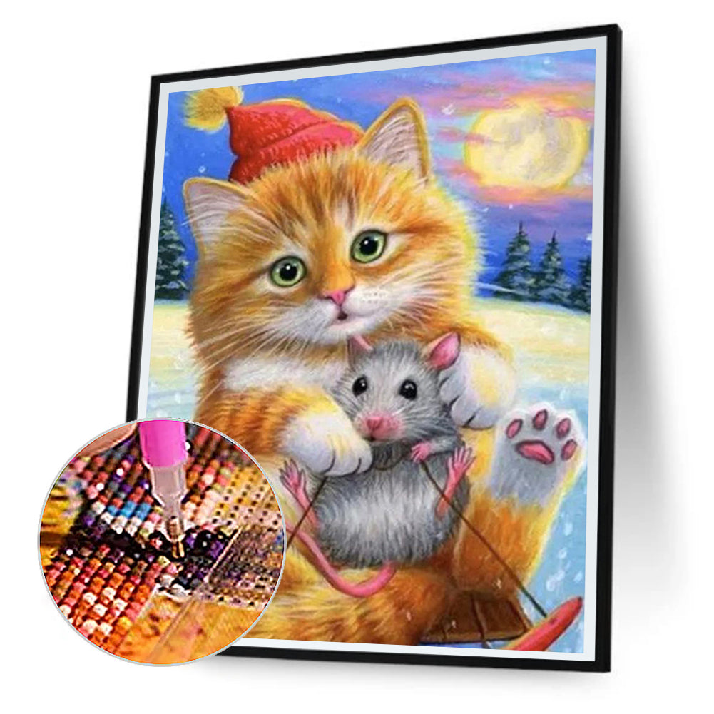 Little Mouse And Cat 30*40CM(Canvas) Full Round Drill Diamond Painting
