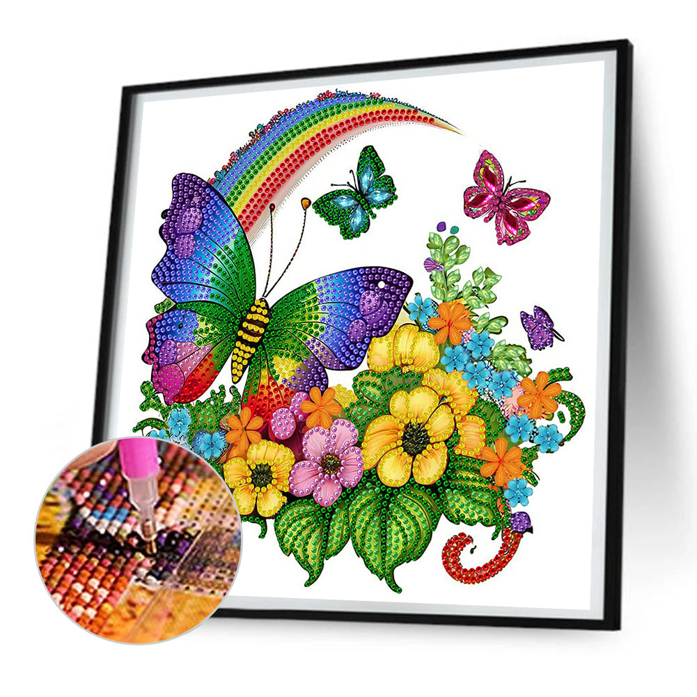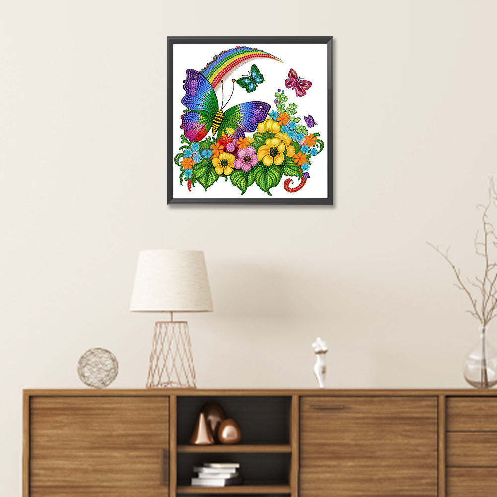 Rainbow Butterfly 30*30CM(Canvas) Partial Special Shaped Drill Diamond Painting