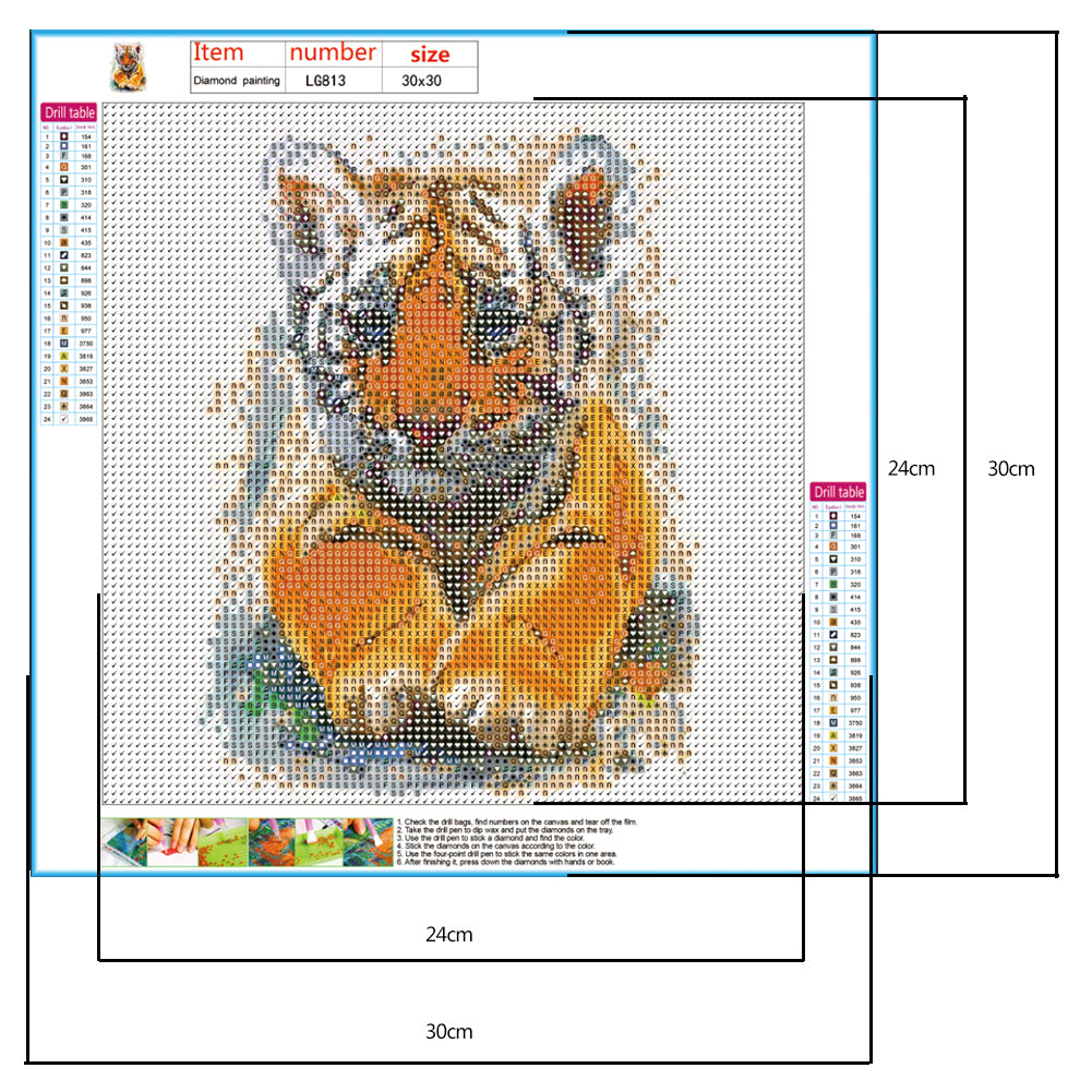 5D Full Round Drill Diamond Painting DIY Little Tiger Rhinestone Mosaic Picture Craft Wall Decor Poster
