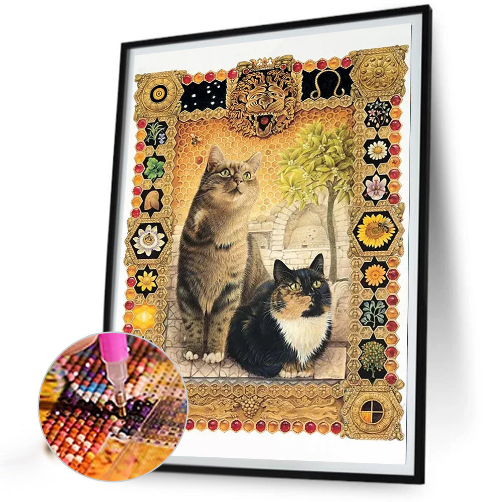 Two Retro Cats 30*40CM(Canvas) Full Round Drill Diamond Painting