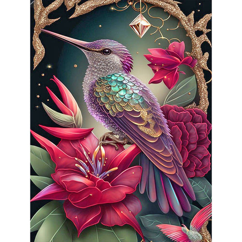 Hummingbird On A Flower 30*40CM(Canvas) Full Round Drill Diamond Painting