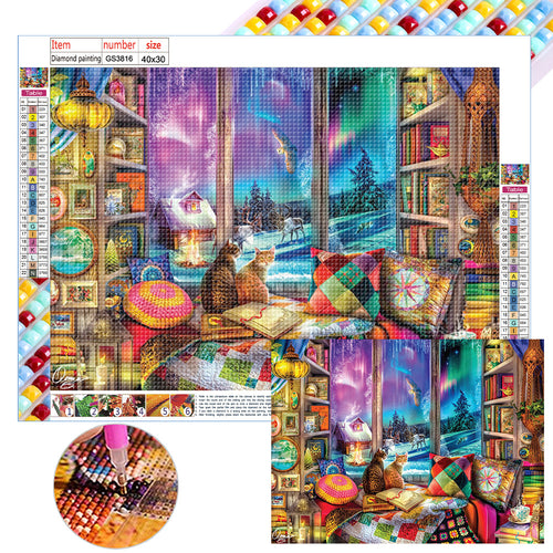 Cat In A House 40*30CM(Canvas) Full Square Drill Diamond Painting