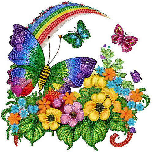 Rainbow Butterfly 30*30CM(Canvas) Partial Special Shaped Drill Diamond Painting