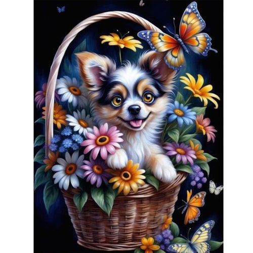 Dog In A Basket 30*40CM(Canvas) Full Round Drill Diamond Painting