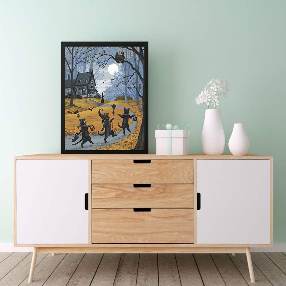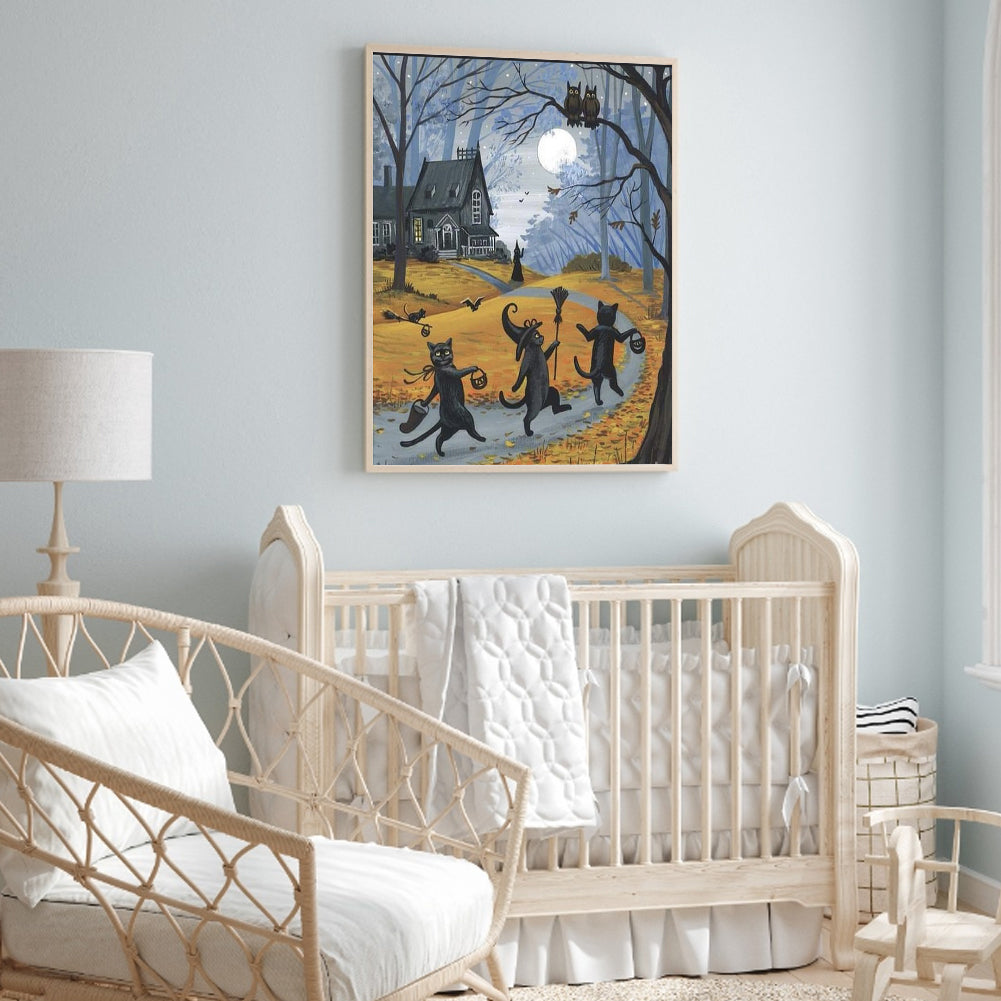 Three Black Cats 30*40CM(Canvas) Full Round Drill Diamond Painting