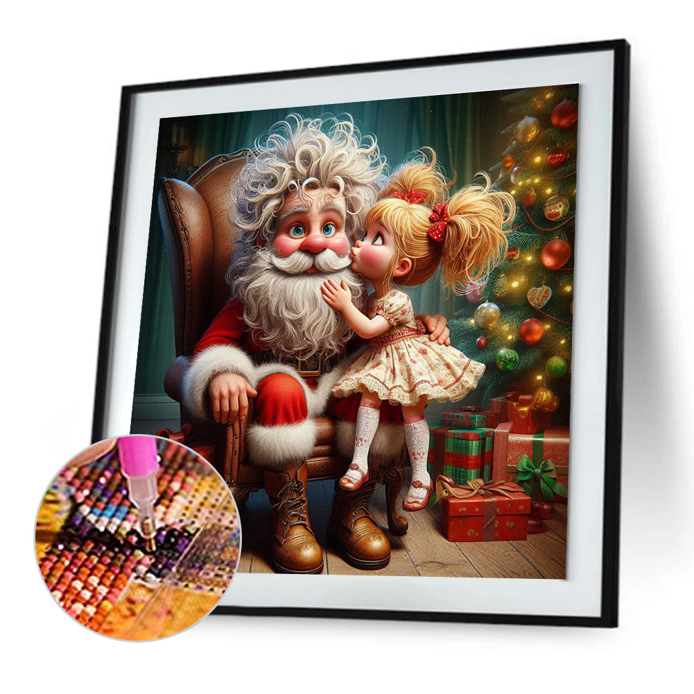 Christmas Santa Claus And Girl 40*40CM(Canvas) Full Round Drill Diamond Painting