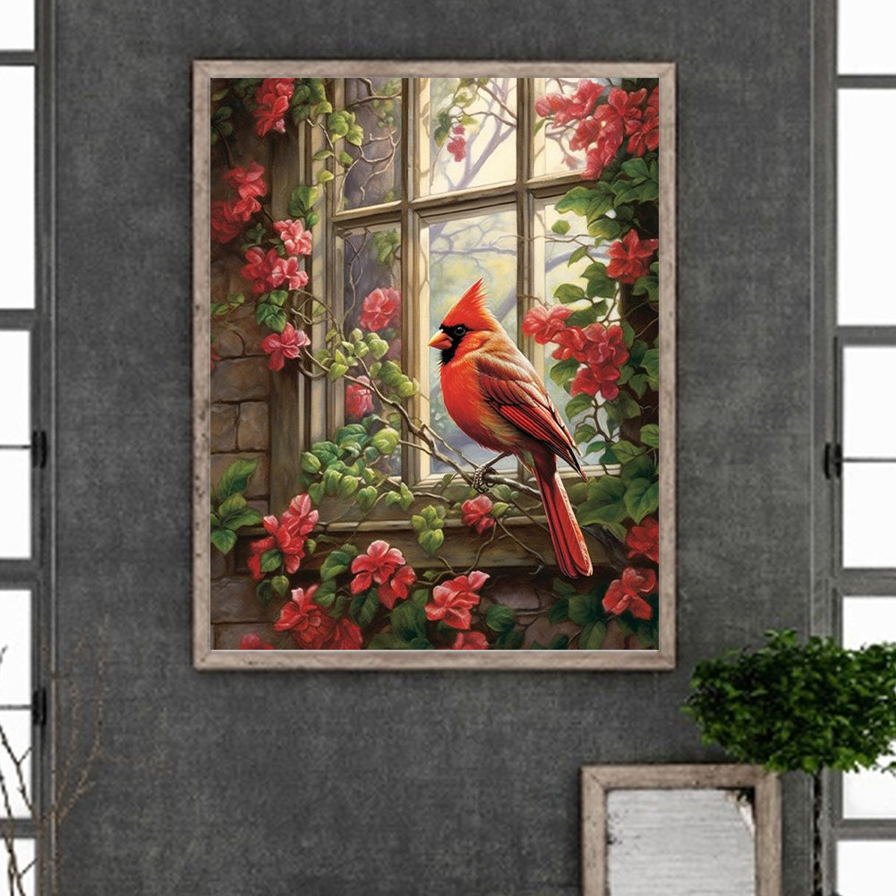 Glassy Cardinal By The Window-Bird 40*50CM(Canvas) Full Round Drill Diamond Painting