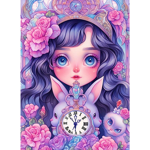 Girl With White Hair And Bunny Ears 30*50CM(Canvas) Full Round Drill Diamond Painting