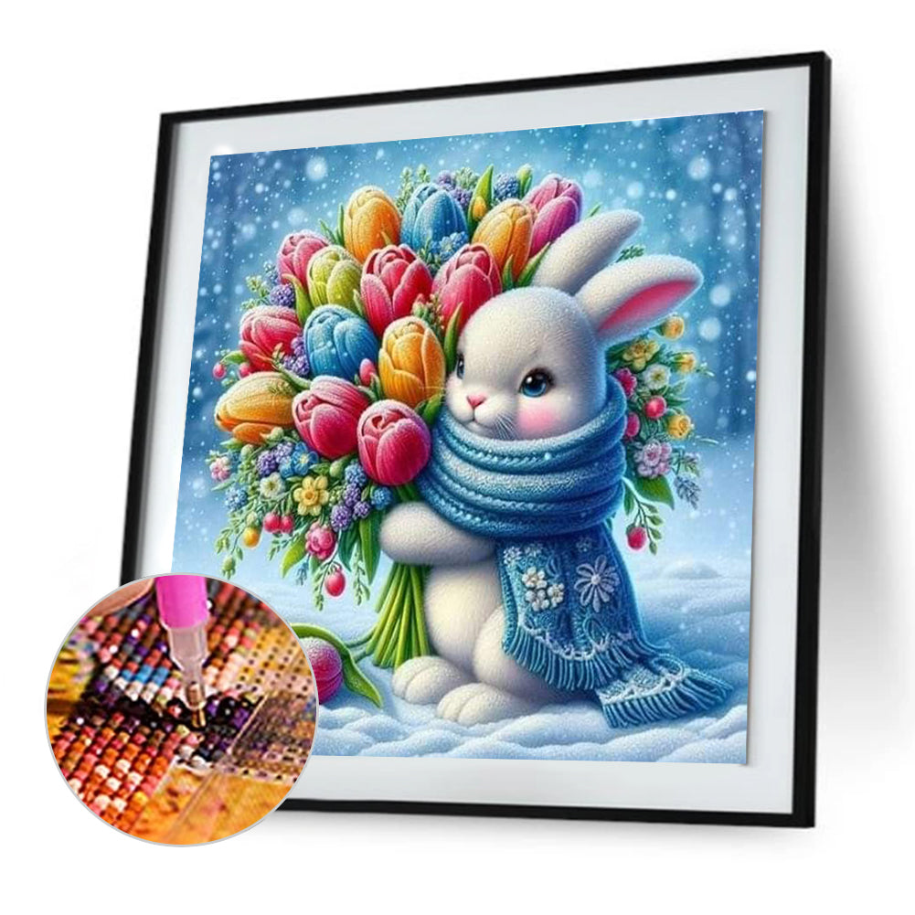Bunny Holding Flowers In The Snow 30*30CM(Canvas) Full Round Drill Diamond Painting