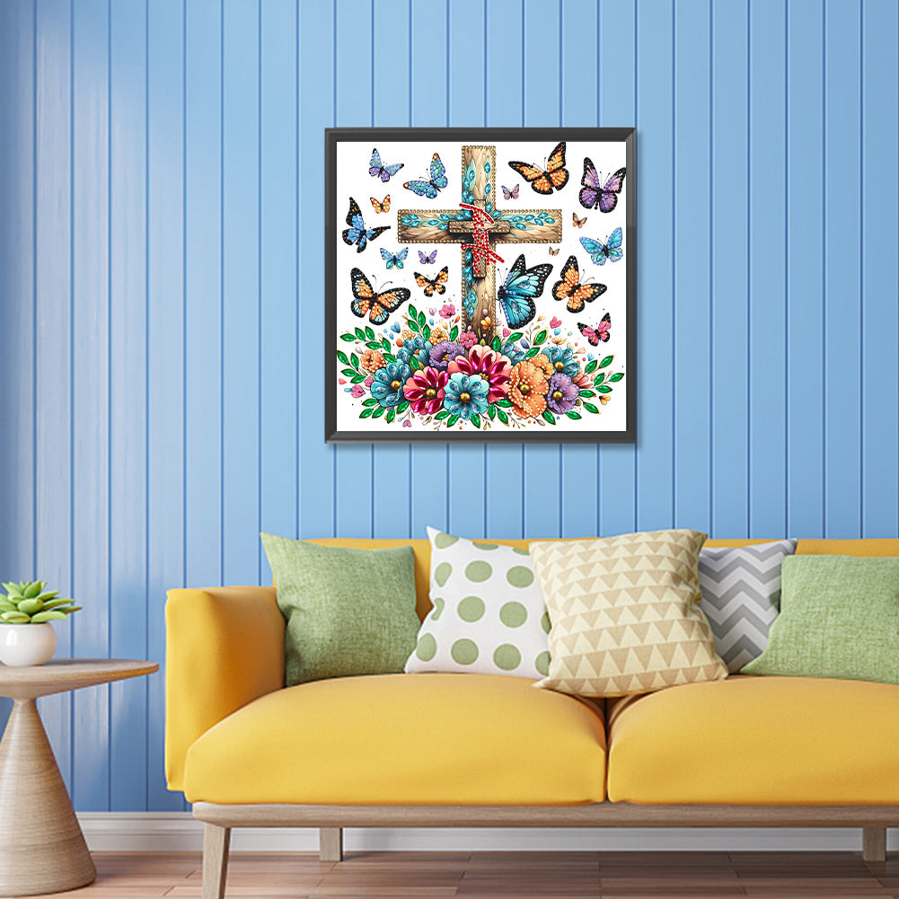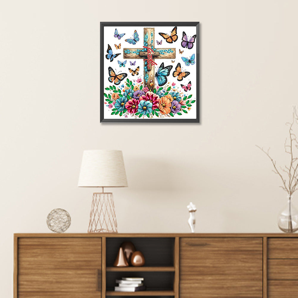 Cross Butterfly 30*30CM(Canvas) Partial Special Shaped Drill Diamond Painting
