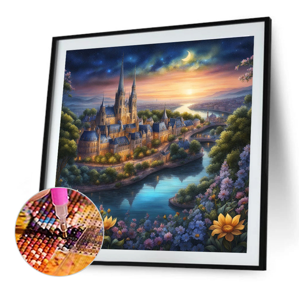 Classic Landscape Castle 40*40CM(Canvas) Full Round Drill Diamond Painting