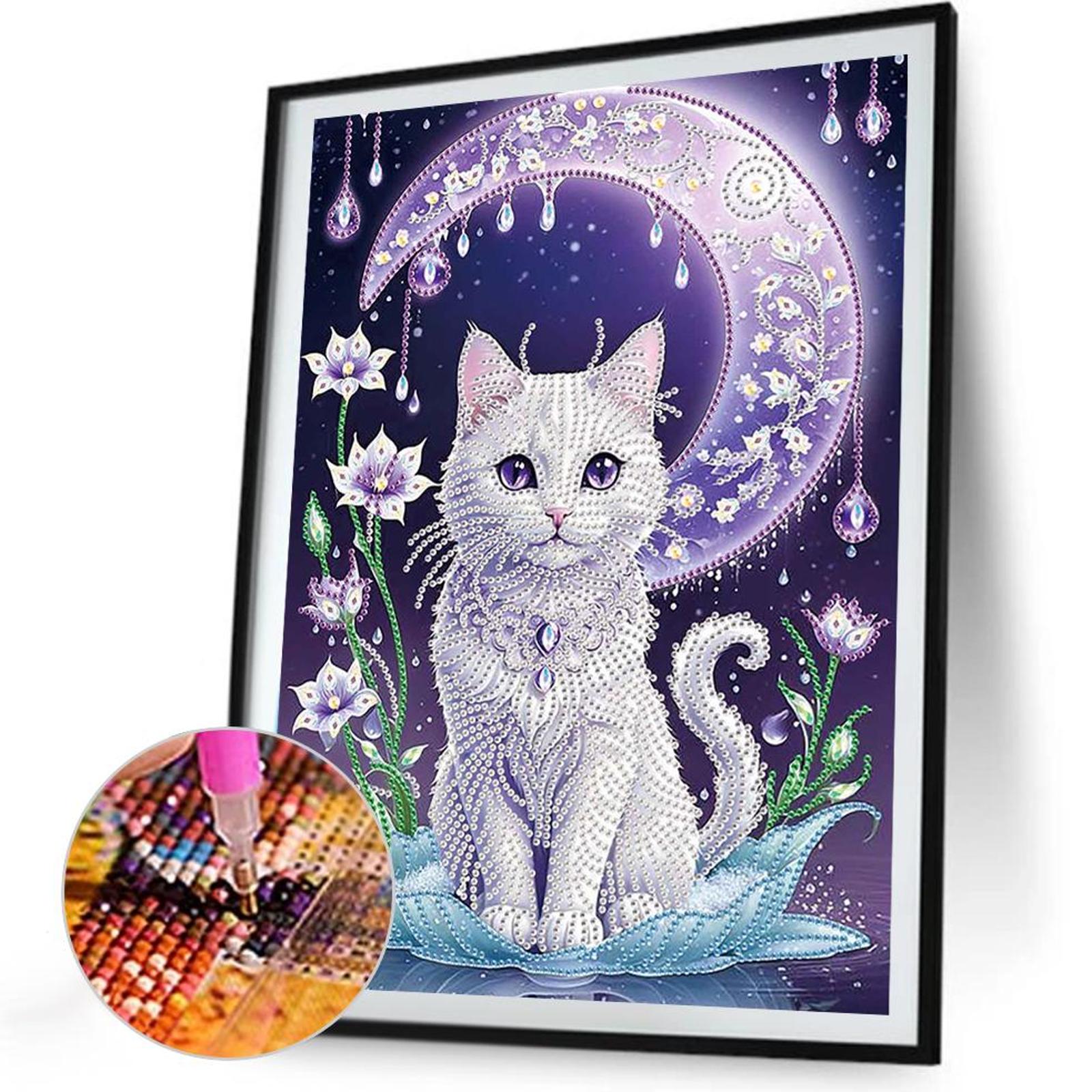 Purple Moonlight Cat 30*40CM(Canvas) Partial Special Shaped Drill Diamond Painting