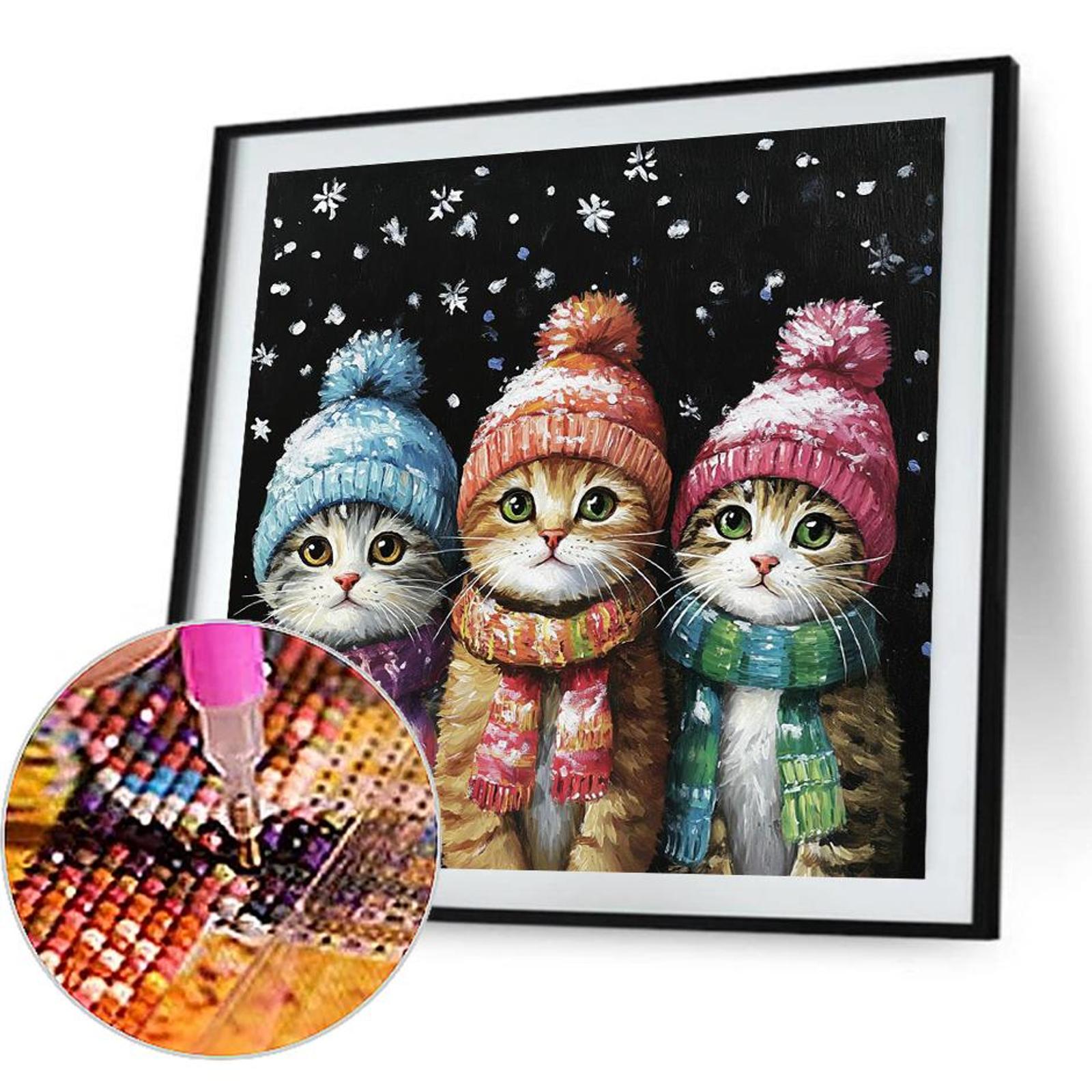 • Load image into Gallery viewer, Three Cats In Winter 30*30CM(Canvas) Full Round Drill Diamond Painting