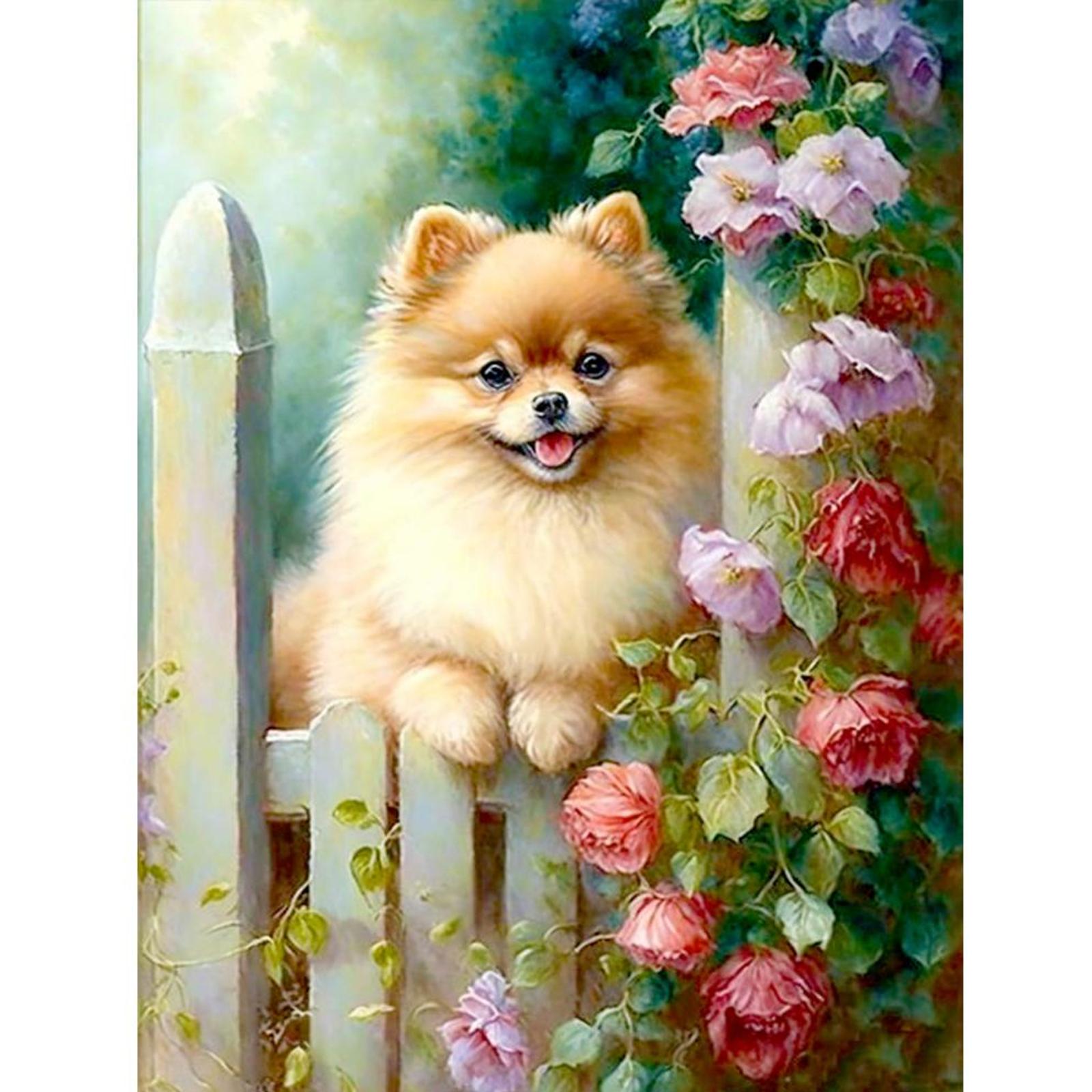 Dog From Flower Farm 30*40CM(Canvas) Full Round Drill Diamond Painting