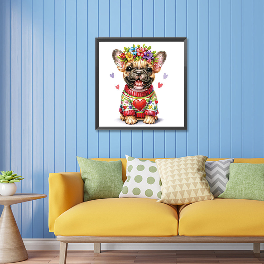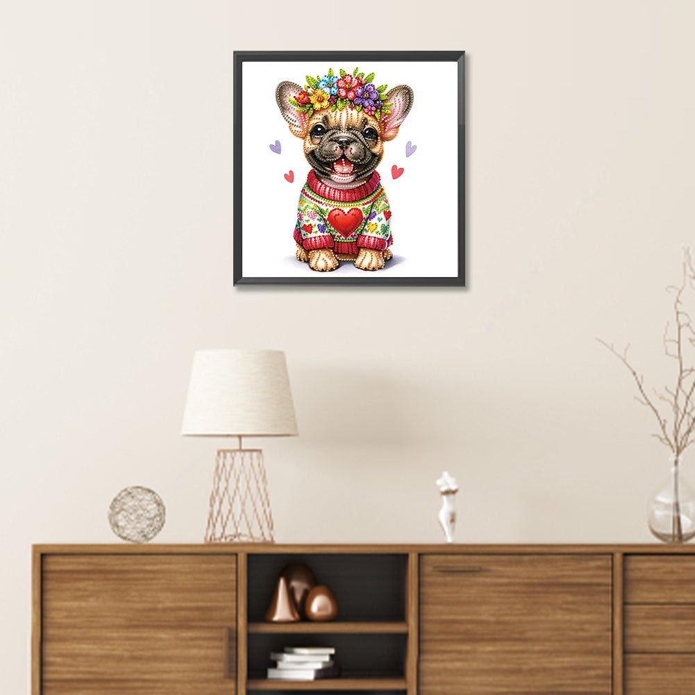 Wreath Bulldog 30*30CM(Canvas) Partial Special Shaped Drill Diamond Painting