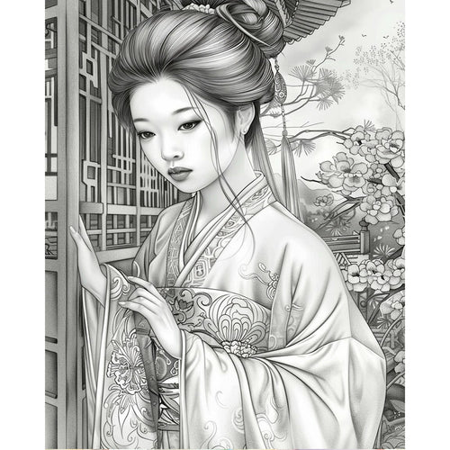 Black And White Floral Girl 40*50CM(Canvas) Full Round Drill Diamond Painting