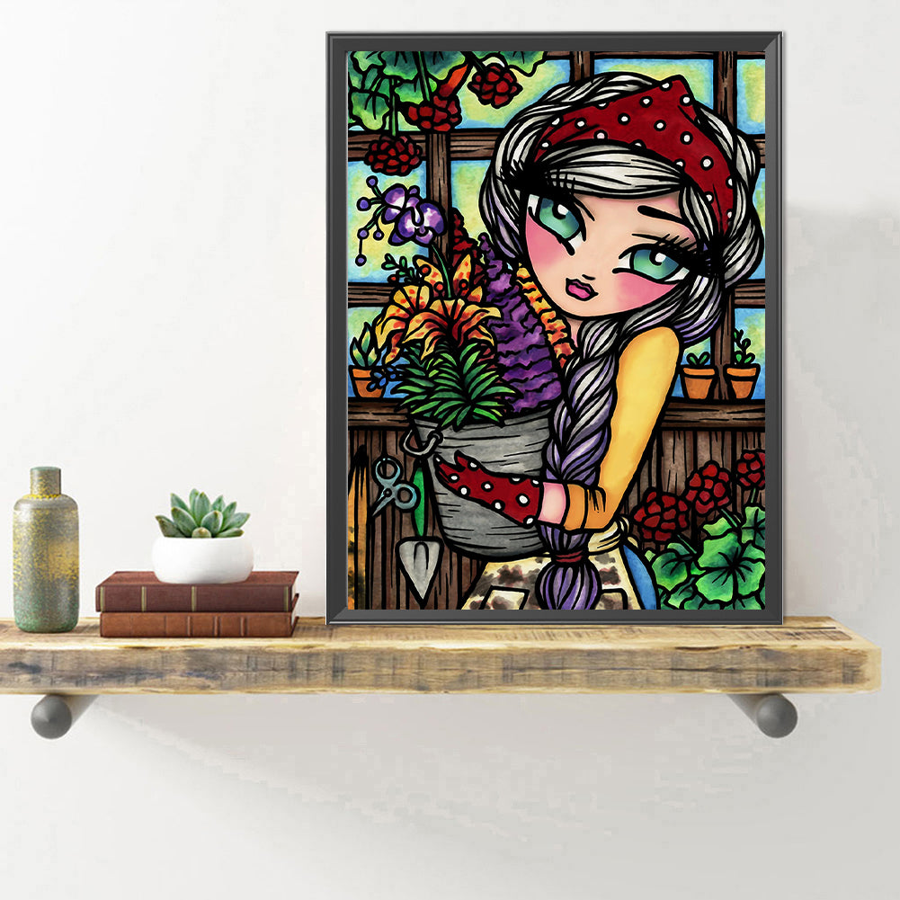 Flower Market Girl 40*50CM(Canvas) Full Round Drill Diamond Painting