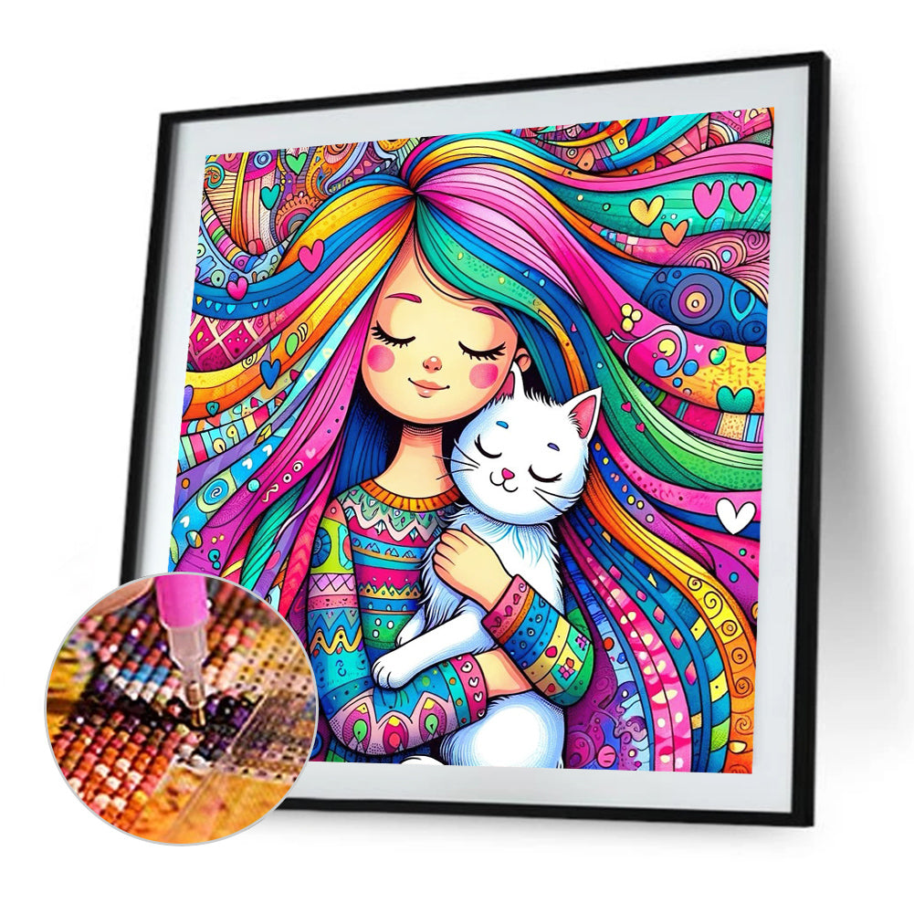 Girl And White Cat 40*40CM(Picture) Full Round Drill Diamond Painting