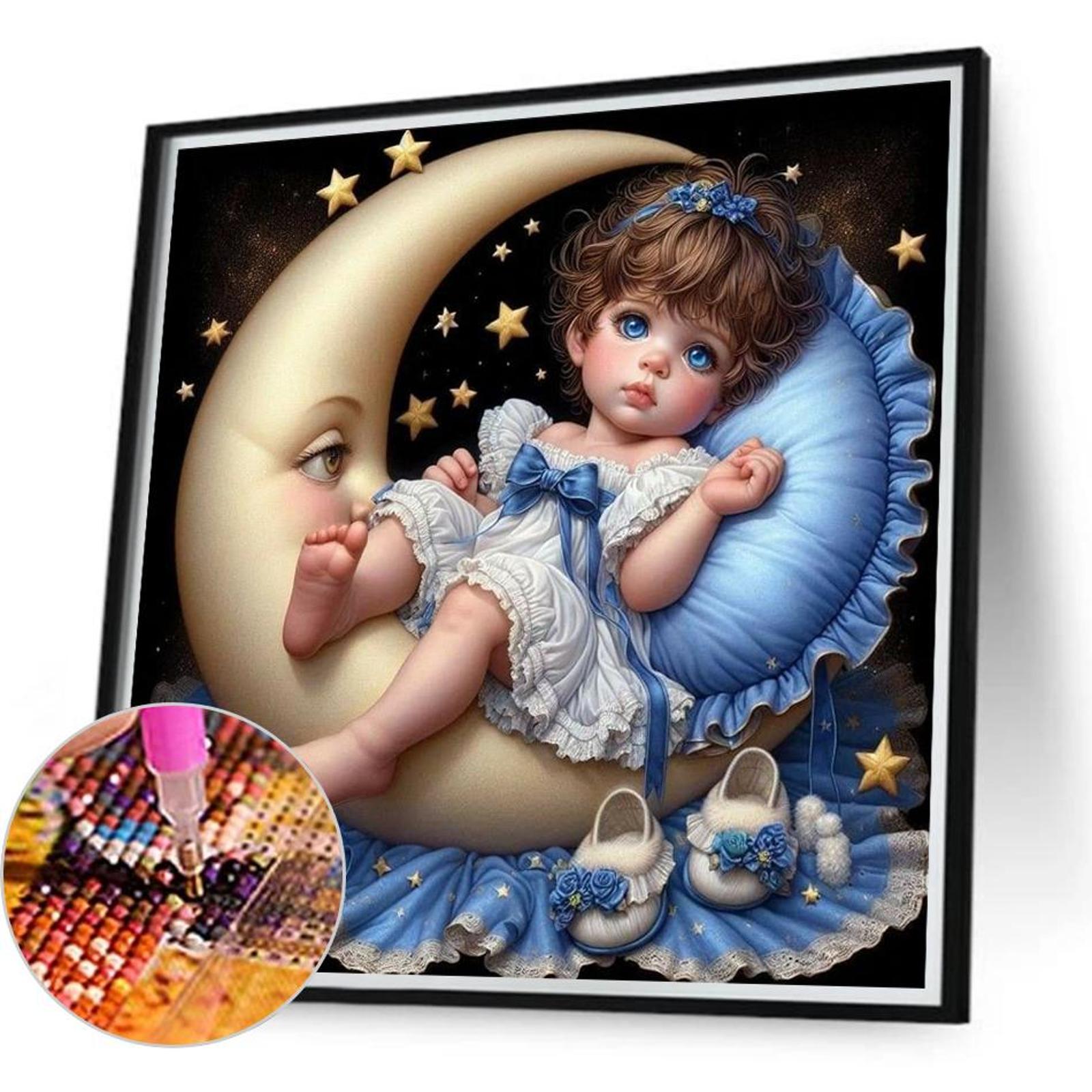 • Load image into Gallery viewer, Girl In Pajamas And The Moon 40*40CM(Canvas) Full Round Drill Diamond Painting