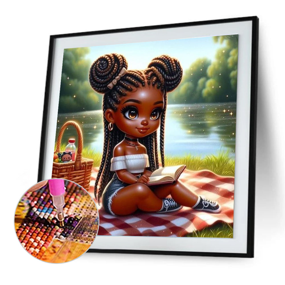 Girl With Pigtails Reading 30*30CM(Canvas) Full Round Drill Diamond Painting