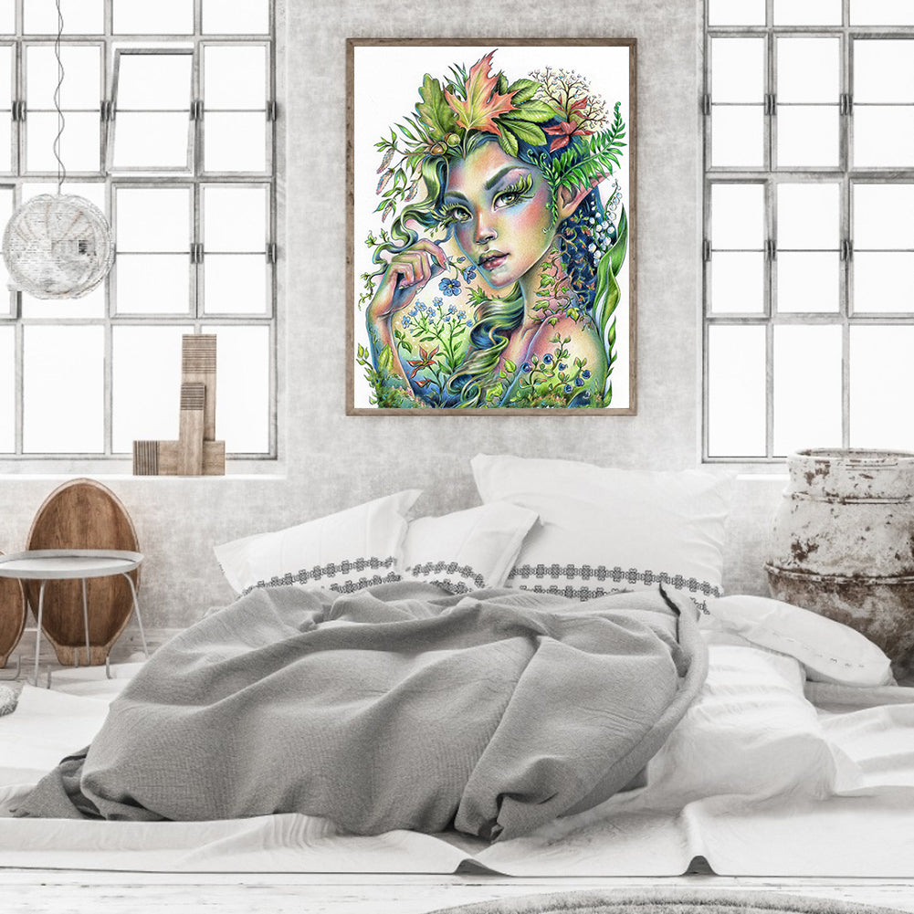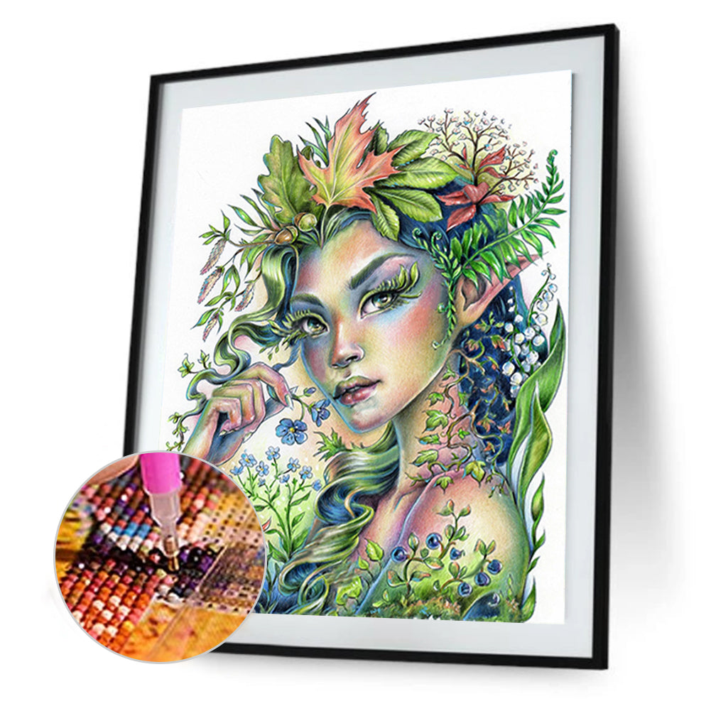 Green Plant Girl 30*40CM(Canvas) Full Square Drill Diamond Painting
