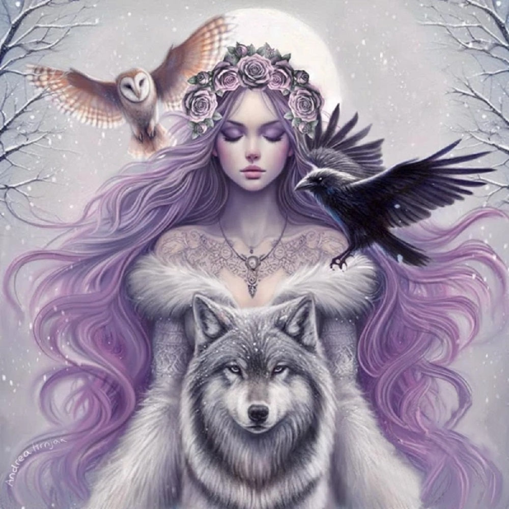 Purple-Haired Girl Under The Moon 40*40CM(Canvas) Full Round Drill Diamond Painting