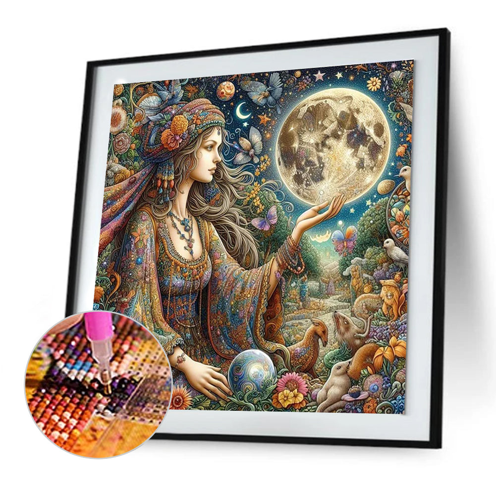 • Load image into Gallery viewer, Strange Girl And The Moon 50*50CM(Canvas) Full Round Drill Diamond Painting