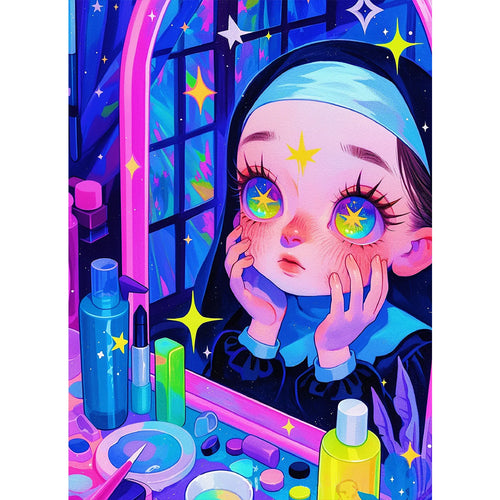 Girl Looking In The Mirror 40*55CM(Canvas) Full Round Drill Diamond Painting