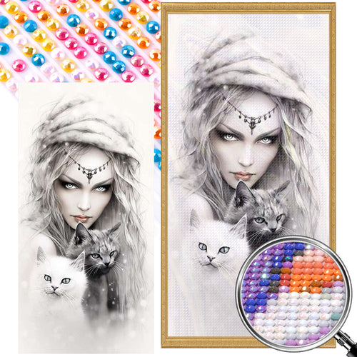 Girl And Cat 40*80CM(Picture) Full Round Drill Diamond Painting