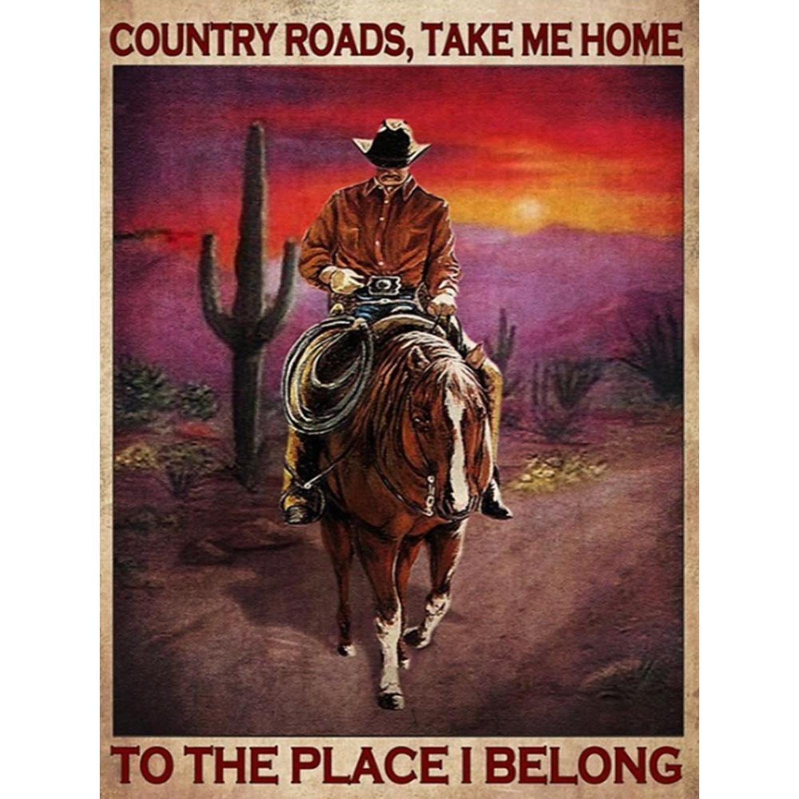 Poster-Cowboy Horse 30*40CM(Canvas) Full Round Drill Diamond Painting