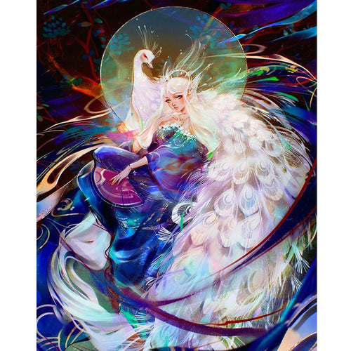 White Peacock And Girl 40*50CM(Canvas) Full Round Drill Diamond Painting
