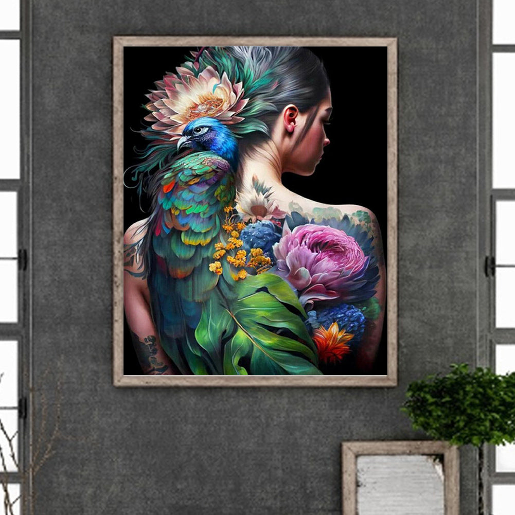 Girl With Peacock Print On Back 40*50CM(Canvas) Full Round Drill Diamond Painting