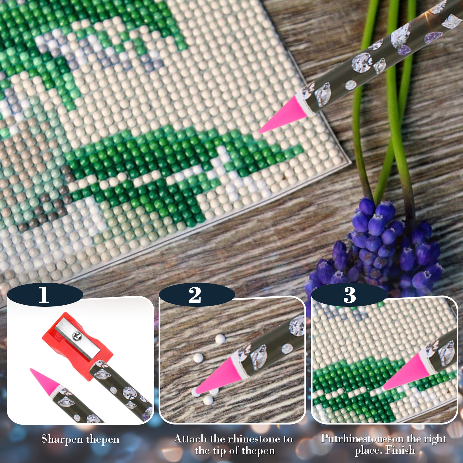 Diamond Painting Pen with Pencil Sharpener Rhinestone Picker Pencil 23cm Self Adhesive Nail Dotting Wax Pen for Adults Beginners