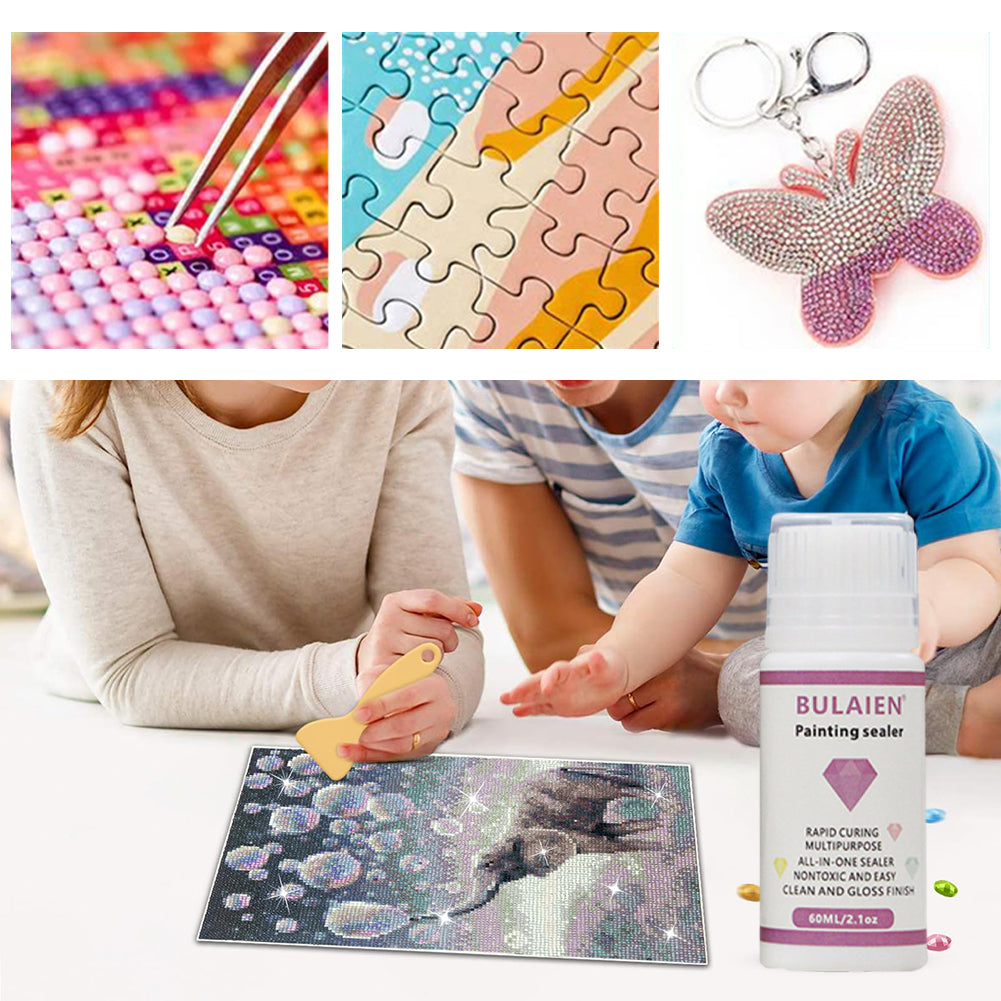 1. Lasting Brilliance: Preserve the luster and cleanliness of your puzzles, diamond paintings, and canvas works with our PVA-based sealant. Our diamond painting sealer is 100% non-toxic, eco-friendly, and water-based, making it a safe choice for both adults and children.