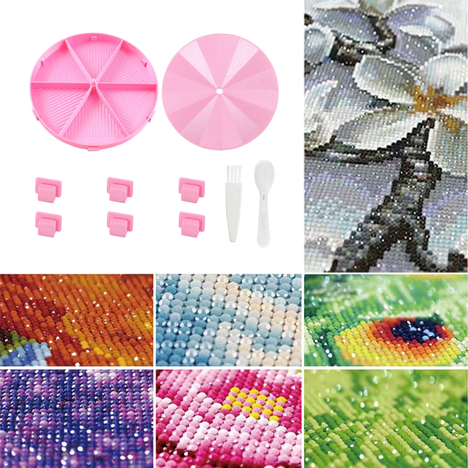 Beads Sorting Storage Tray Round Diamond Painting Tools with Lid (Pink)
