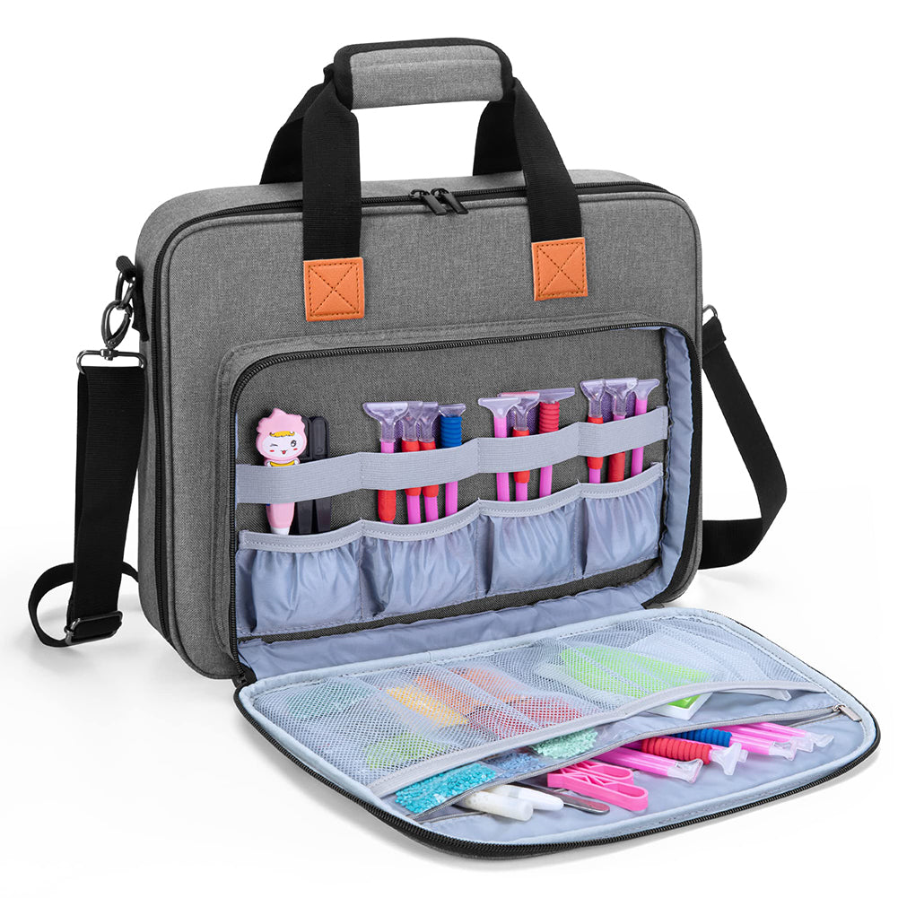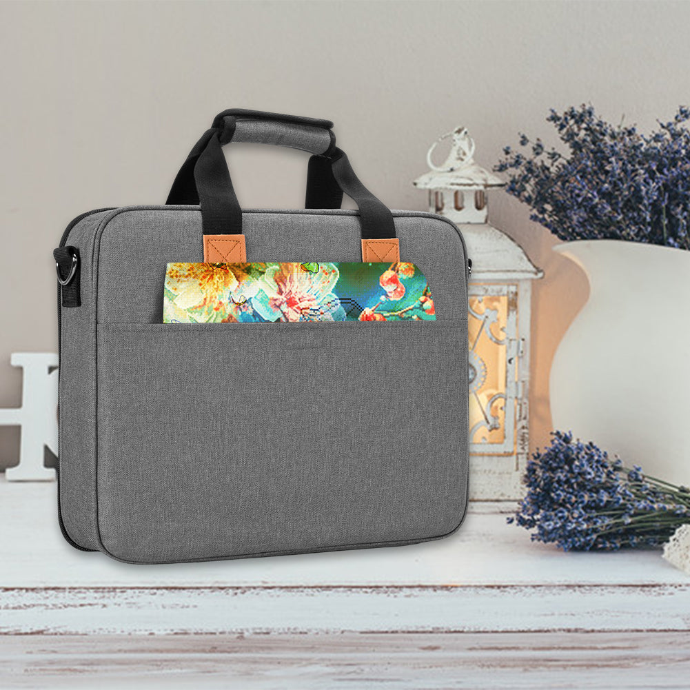 4. Lightweight and Portable: Equipped with a sturdy handle and removable shoulder strap, this diamond painting tools storage bag offers convenient portability. It can be easily carried by hand or worn over the shoulder, and it can also be effortlessly placed in a backpack or suitcase. This makes it ideal for users to carry and use during travel or outdoor activities.